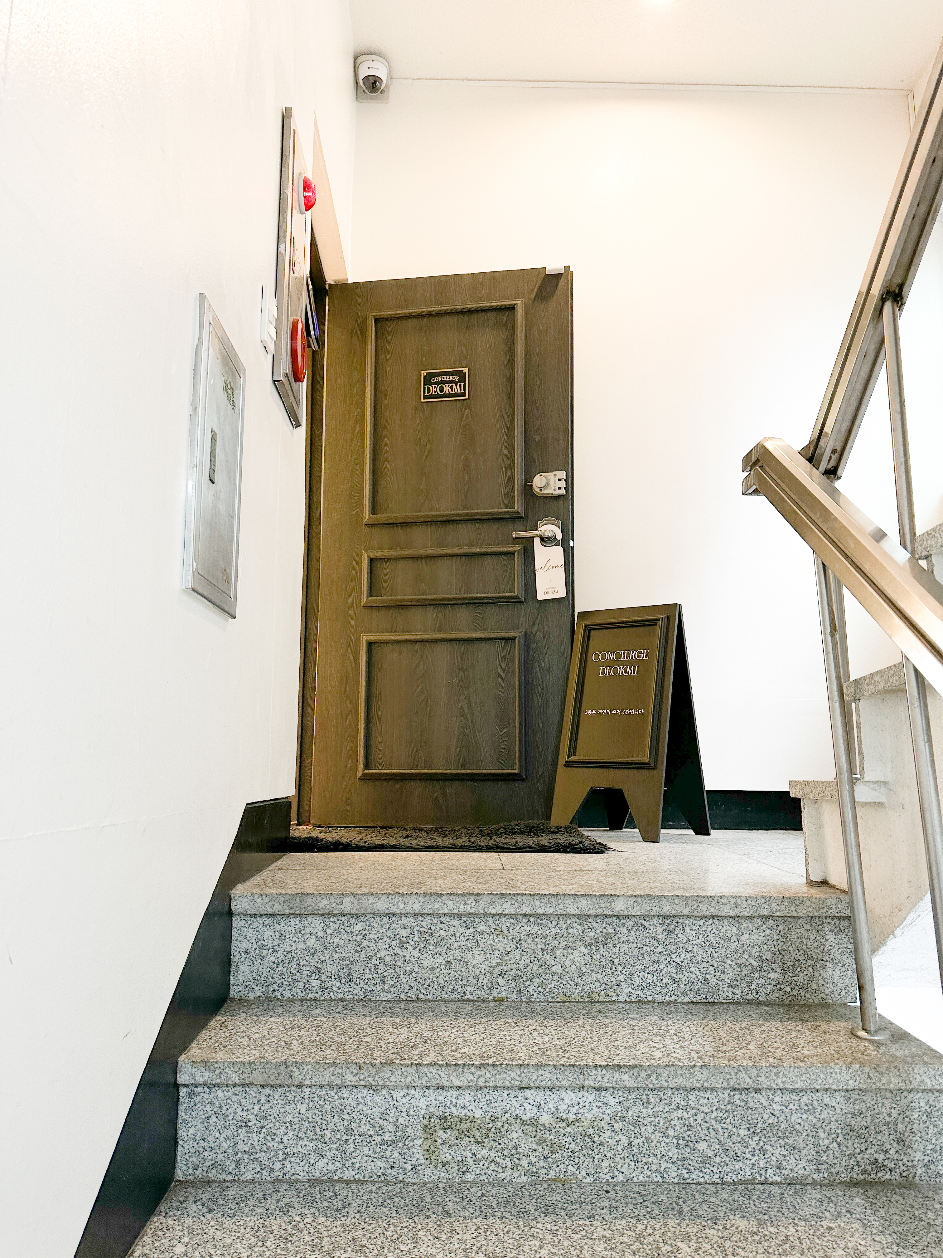 I discovered a CONCIERGE in the heart of Haeridan-gil. It was nestled on the second floor of an old residential building. Initially unsure of the address, I was greeted by an inviting old black wooden door.