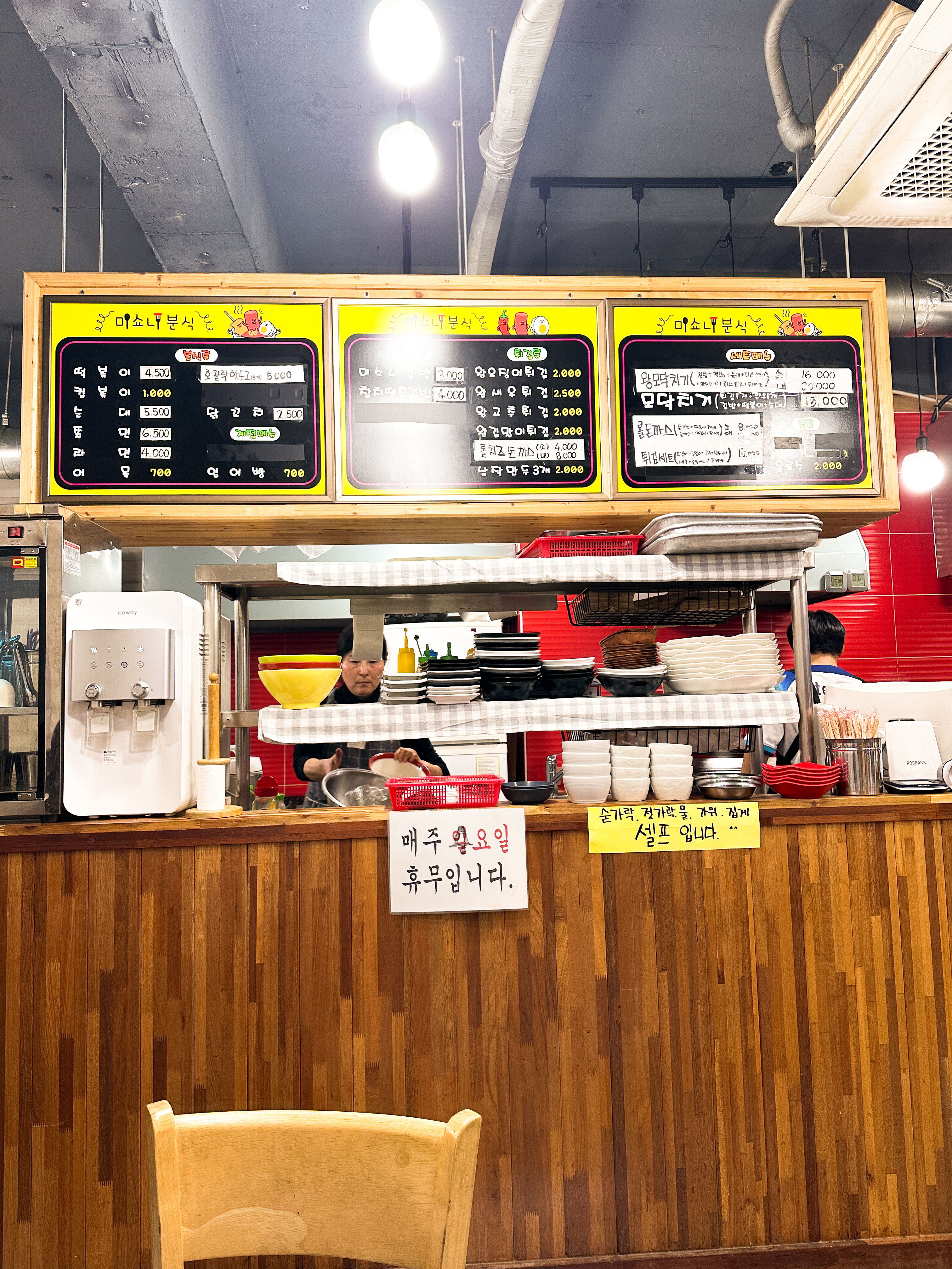 Every time I travel to a new place, I seek out the famous Tteokbokki snack bars in the area. They all seem familiar—owners scoop out pre-cooked Tteokbokki onto a flat plate, then add tuigim (fries) and dip it in the Tteokbokki sauce. Another variation is Jeukseok Tteokbokki, served to cook on the table.