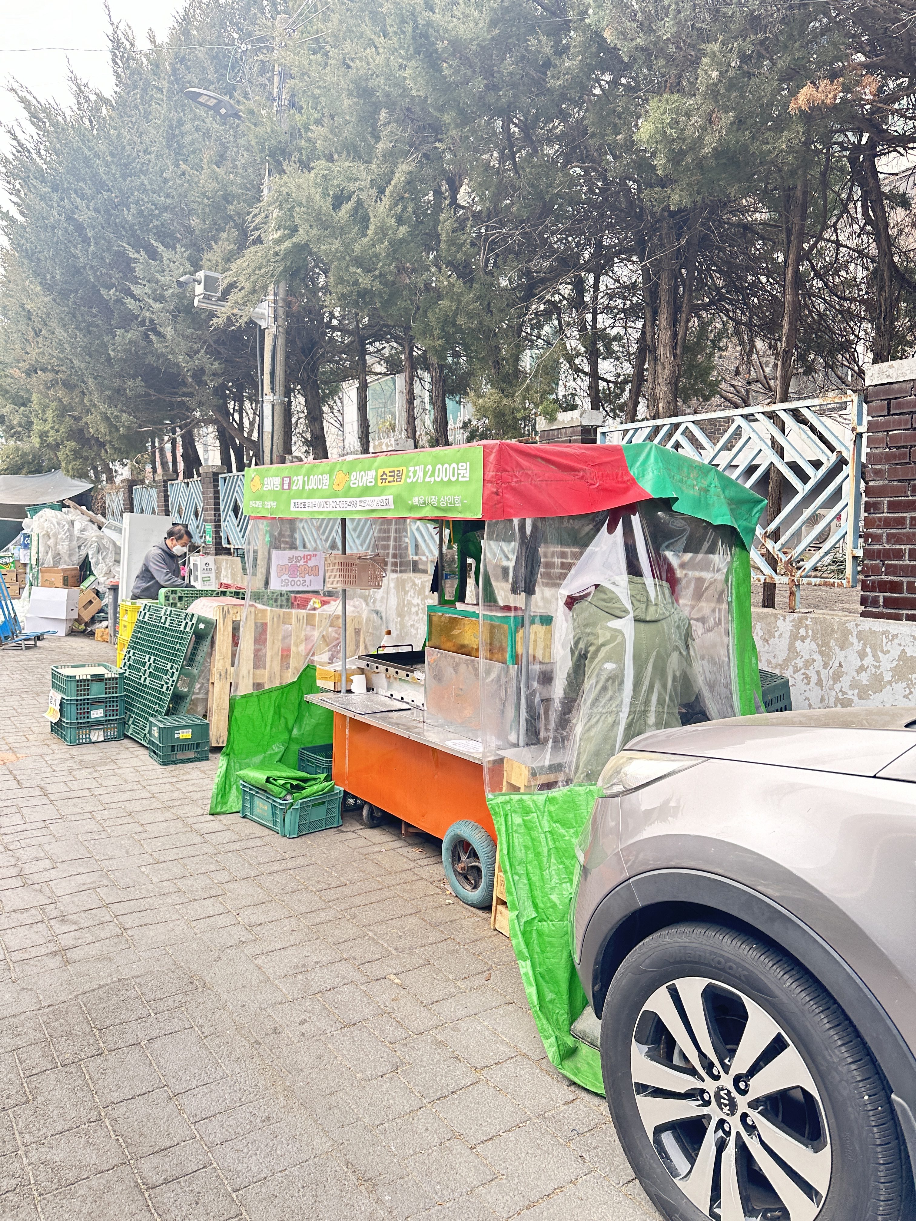 Bungeoppang is a carp-shaped bun sold only in the winter season. It’s filled with red bean paste and typically costs only about 4 pieces for 1,000 won. Paying 3,000 won ensures the whole family can enjoy it. Despite widespread credit card usage, vendors usually only accept cash, so it’s common to keep around 3,000 won handy for Bungeoppang vendors.