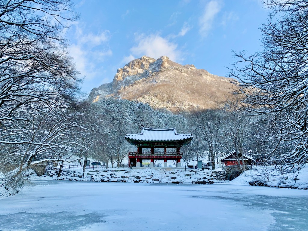 Baekyang-Sa is Buddhist Temple which is situated in JangSeong, Jeonra-Namdo Province. I had no idea there was such a gorgeous temple. It’s no wonder, as Baekyang Buddhist Temple is located in Najangsan National Park, known for its beautiful scenery during the fall foliage season. Additionally, photographers in Korea often capture authentic pictures in this place during the flower blooming season. Despite my initial lack of knowledge about the temple, it has built its fame to the extent of having its own railway station. When I first visited in winter, it offered a breathtaking view for all of us.