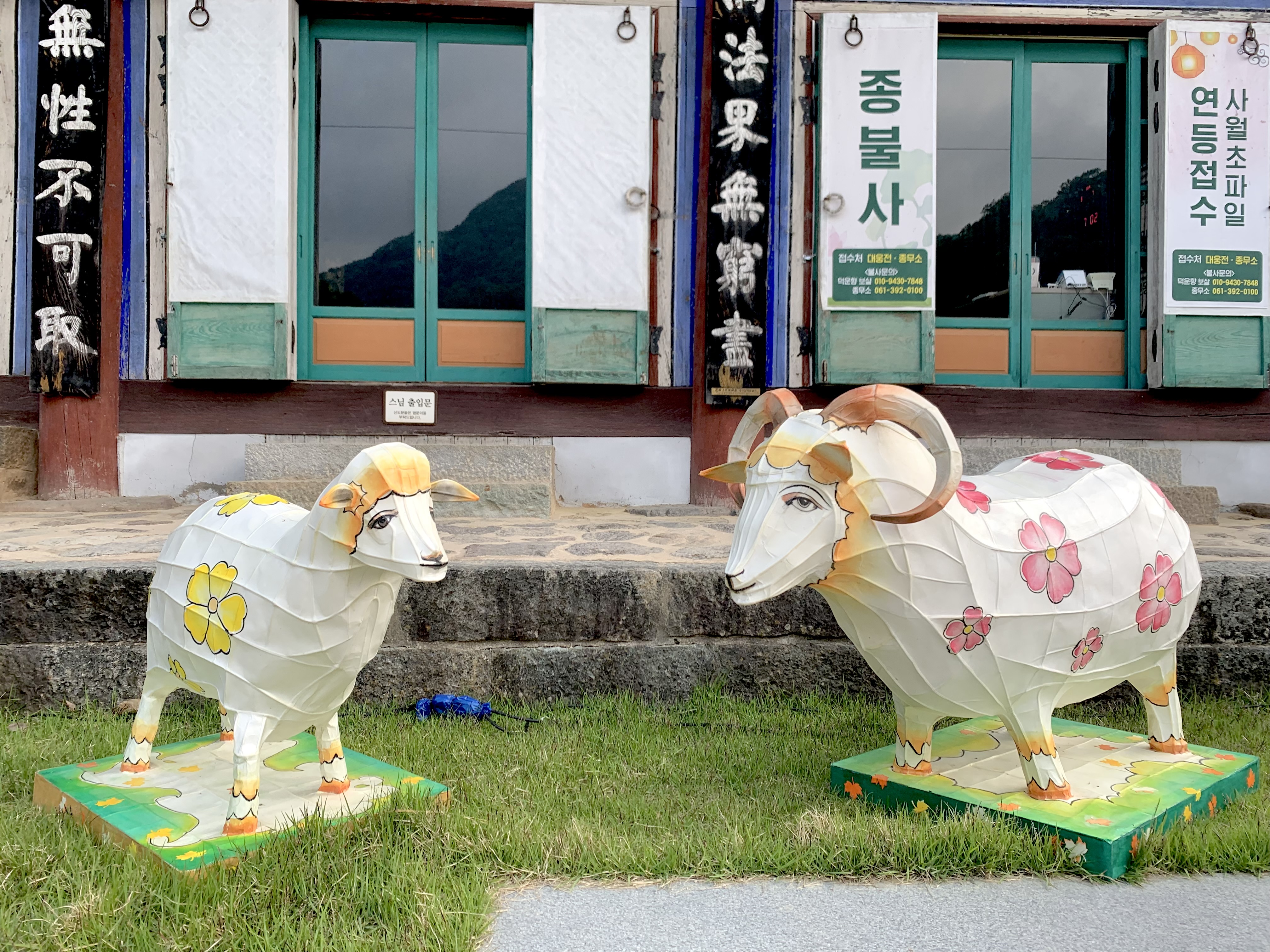 The current name was given in 1574 during the Joseon Dynasty by the Buddhist monk Hoan Yang Seon Sa. He preached the GeumGangGyeong (Vajracchedika Prajnaparamita Sutra: Diamond Sutra) at Youngcheon Cave. On the third day of his preaching, a white sheep attended and cried during his sermon. Hoan Yang Seon Sa dreamed on the seventh day that the white sheep told him, “I was a person who belonged to heaven but became an animal due to committing a sin. I am allowed to be reborn as a heavenly person again since I listened to your preaching.” Hoan Yang Seon Sa discovered the white sheep had died in front of his hermitage after the dream. Thus, he changed the temple’s name to Baekyang-sa, the Buddhist Temple of the White Sheep. It has been destroyed and restored several times since this legend. But has retained its name to this day. This temple still celebrate the legend with special sheep-shaped lanterns, a feature unique to Baekyang-sa, during the Buddha’s birthday.