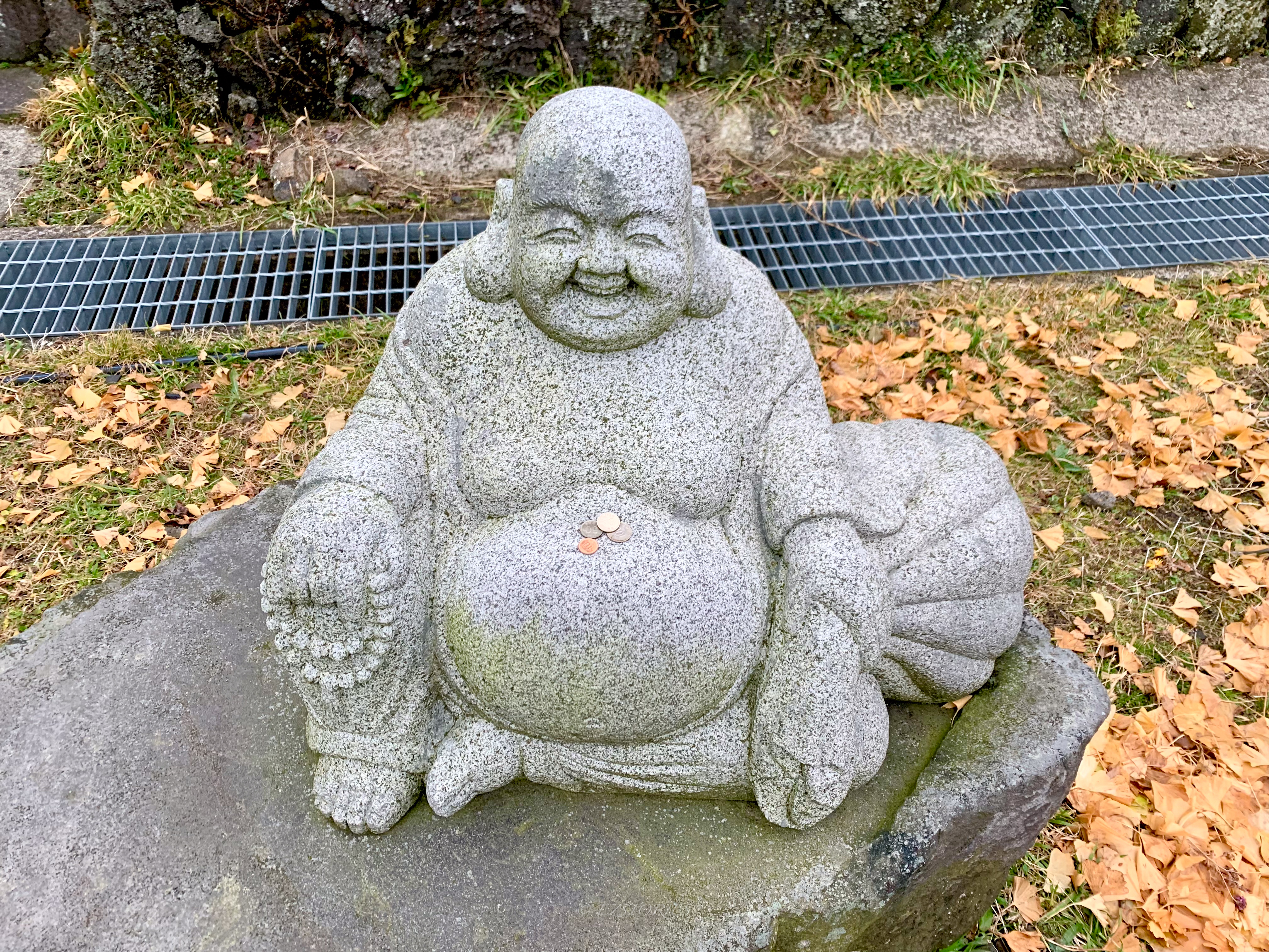 The path to reach the inner gate is a long way, taking about 5 minutes, guarded by stone Buddha statues wearing crowns. The inner gate, “Cheonwang-Mun” (The gate of four heavenly kings), is painted on the wall. It is not a typical feature for a temple on land. The reason for not having statues is unclear. But it’s said that the material had to be transported from the land. And shipping costs were expensive when the temple was founded. Instead, paintings of them remain on the door. However, a marvelous ginkgo tree captured my eyes, seemingly awaiting its believers, close to HaeWol-Gul (cave).