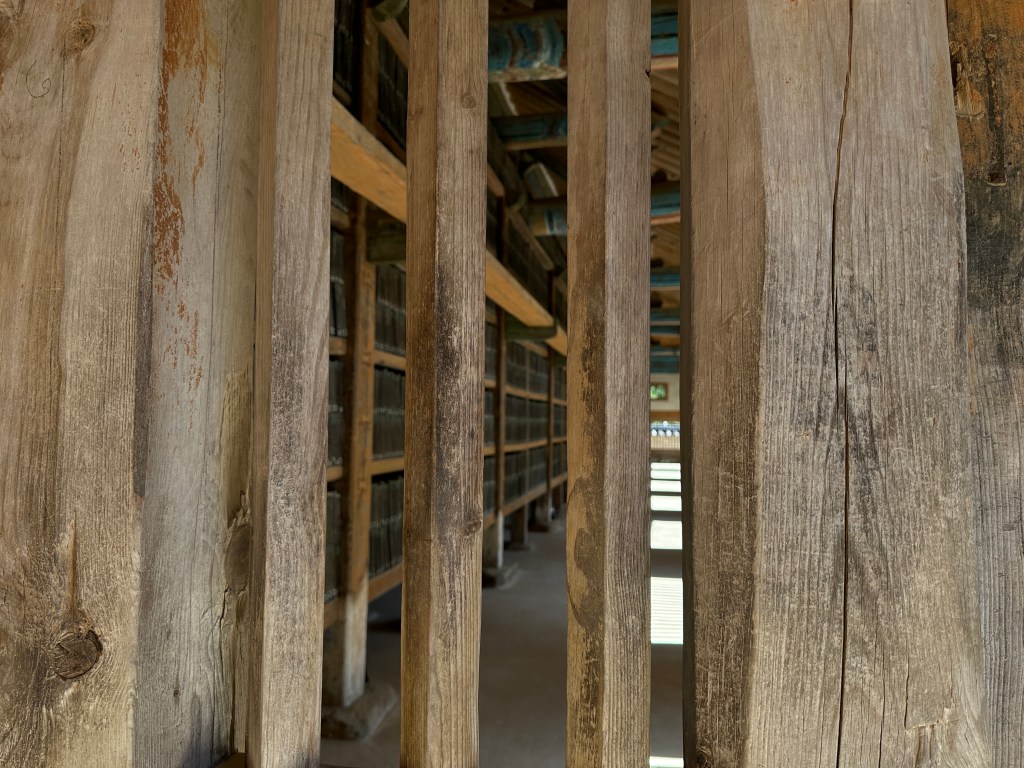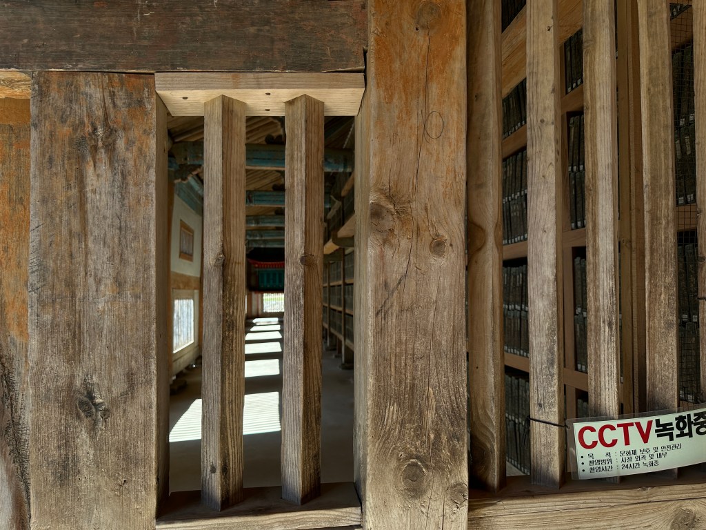 The Palman Daejanggyeong has remained intact for nearly 1,000 years, despite being made of wood, thanks to the functional architectural design of Janggyeongpan-jeon. The building is located at a windy point where three valleys meet, ensuring proper ventilation. It has windows of different sizes on the north and south sides, allowing the wind to circulate up and down. The wooden blocks are stored on thick wooden frames, creating enough space between them. The floor is layered with charcoal, ash powder, salt, and sand, which helps maintain a consistent humidity level and prevents insect damage. Due to the diligent efforts of our ancestors to preserve these treasures, both Janggyeongpan-jeon and the Palman Daejanggyeong have been designated as separate UNESCO World Heritage sites.